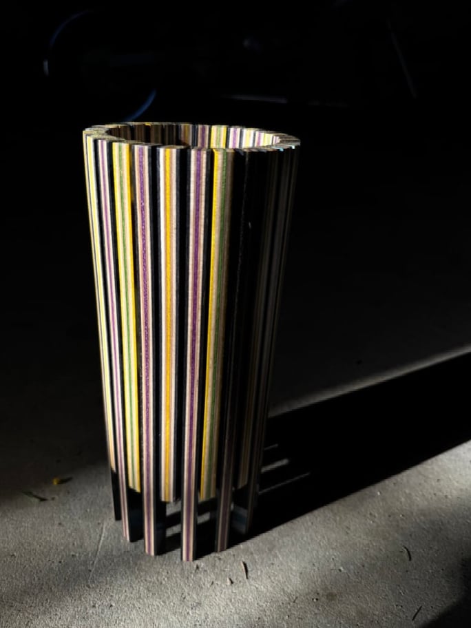 Vase confectionné avec des planches de skateboards recyclées.